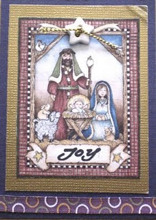 This ATC also brings to mind the Christmas story. As I reflect upon the young couple in the picture, I remember that even in our darkest moments, God never stops loving us, as evidenced by the gift of His Son.