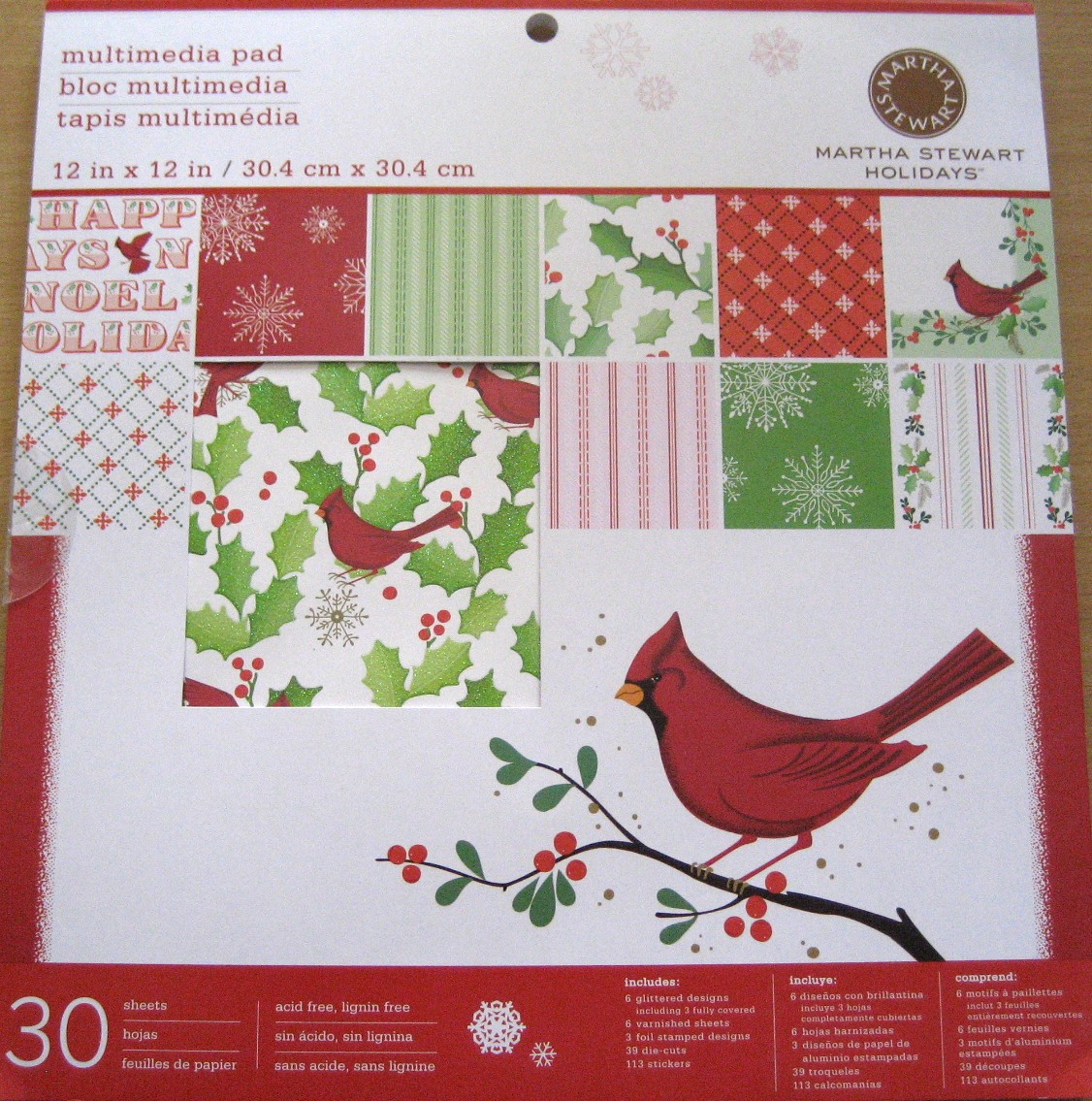 This was my first introduction to Martha’s paper line and it’s gorgeous! Secret Santa sent me Martha’s 12 x 12 Cardinal Holly Multimedia Pad, which contains 30 cardstock weight papers, including 6 glittered designs, 6 varnished designs, 3 foil stamped designs, and papers with 39 die cuts and 113 stickers. The double-sided patterns are beautiful, but my favorites are the glitter sheets – they are rich, thick, heavily glittered papers that do not flake! I cannot wait to make cards with these papers (although several designs are perfect for scrapping!)