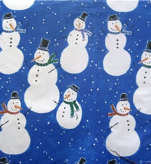 With that in mind, I tore the priority box tab back a bit – just enough to peek inside. I saw blue wrapping paper. Now, knowing I could freely open the box without revealing its contents, I eagerly ripped open the box and pulled out this beautifully wrapped snowman gift!