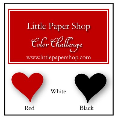 Today I wanted to create a sophisticated ATC for Valentine’s Day, so I combined two challenges – The Little Paper Shop’s Red Black and White Challenge with the Little Red Wagon’s Challenge #15 – Red With Bling – and created today’s ATC.