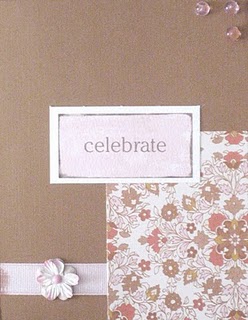 Supplies used include papers and ribbon from a Creating Keepsakes / Lisa Bearnson kit; Prima flowers; and a sentiment from Wild Asparagus. The card was distressed with brown ink; skittles and a pink brad were also added (manufacturers unknown).