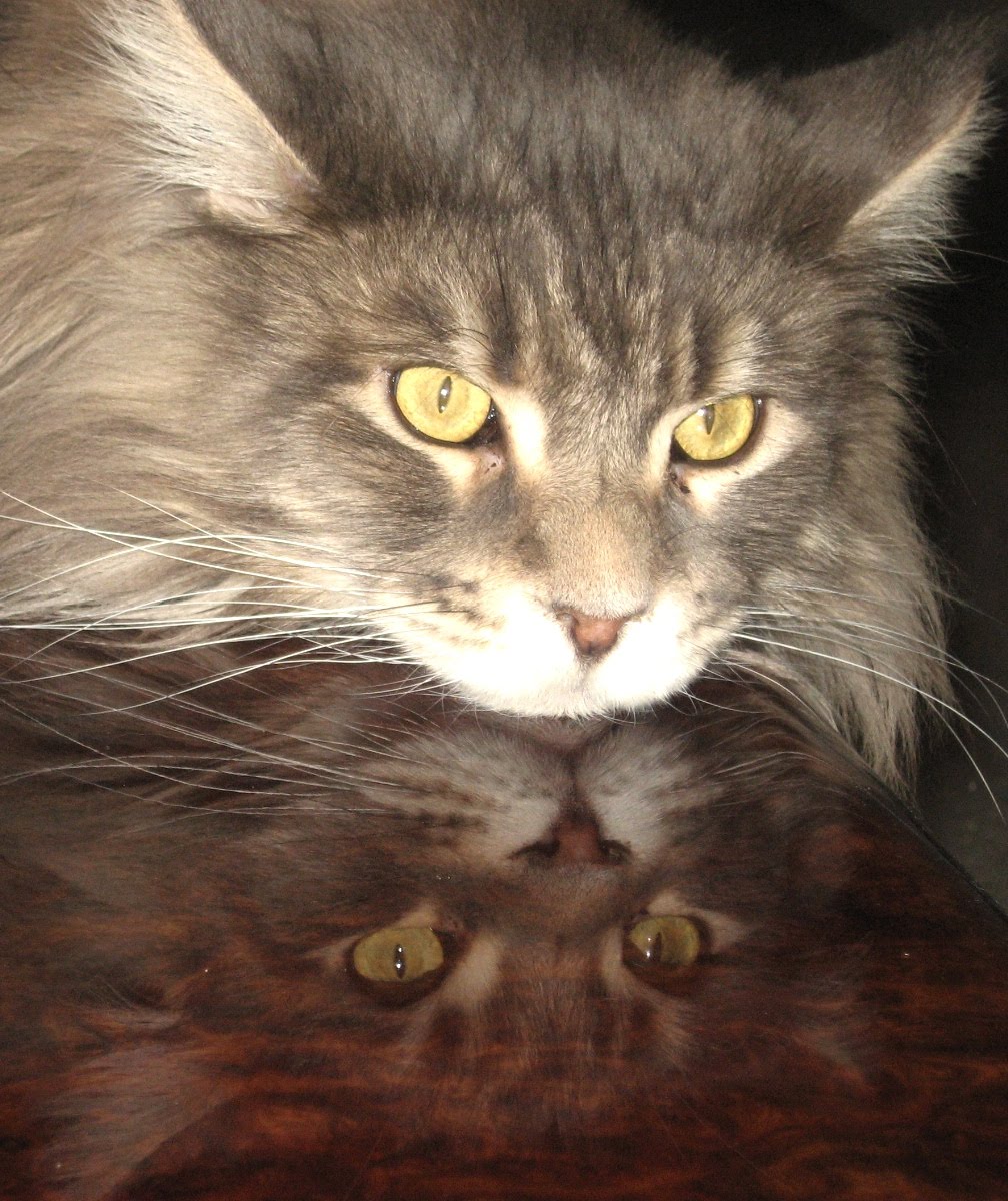He's the cat's meow and I just love that orginal pose with his reflection.