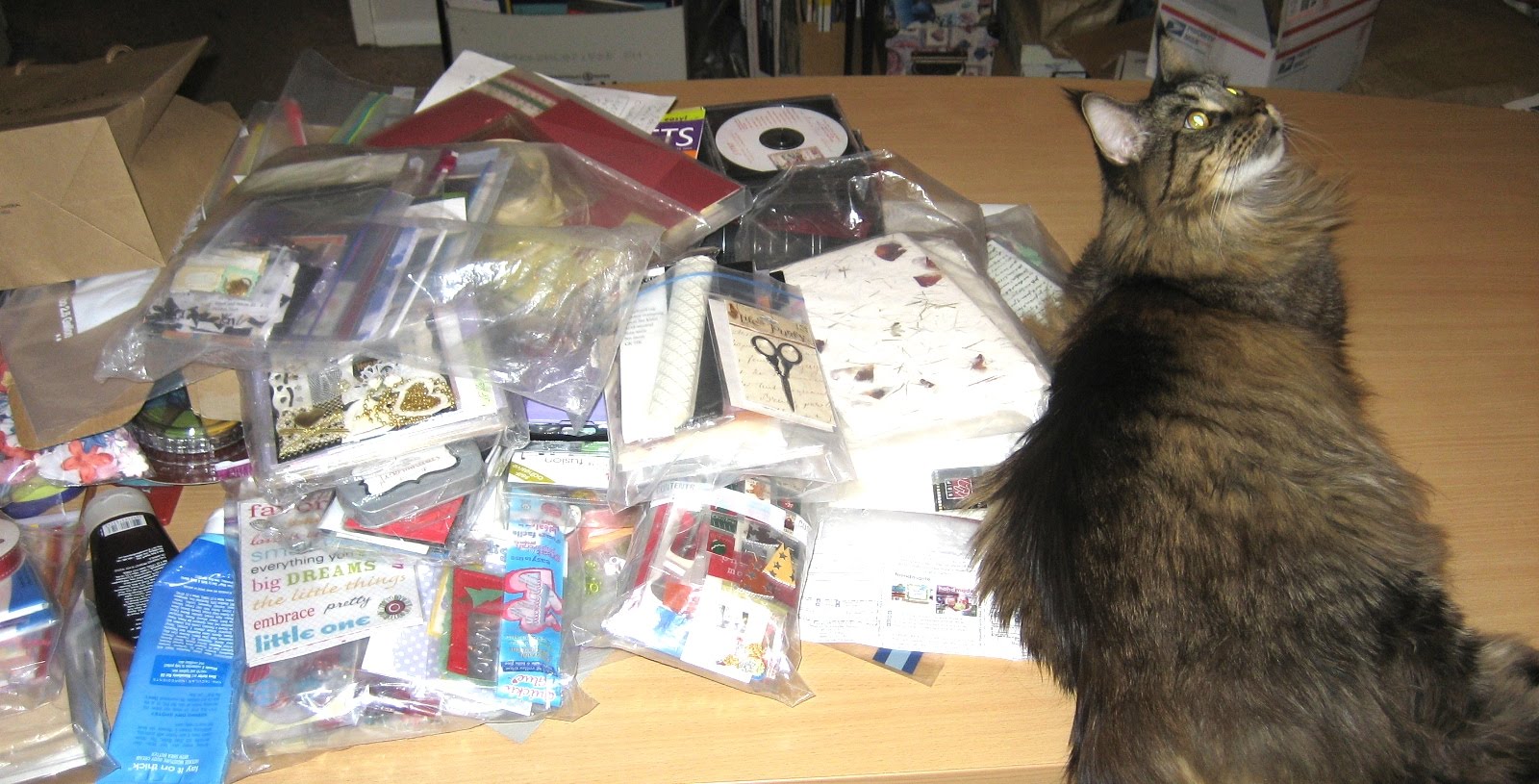 OK, I guess I’ve procrastinated long enough – the Princess of Packages is back! After my hubby picked himself up off the floor from laughing after our esteemed WOYWW Leader Julia recognized my “Suzy Homemaker” skills last week (hmmm… I wonder if she’s sending me a merit badge for that!) – he’s been looking for a way to set me up and “tell the world the truth – the whole truth – and nothing but the truth” in his words! Obviously, his slant on the truth is a tad slanted – while a picture may be worth a thousand words – you always have to check the source (some publishers are more credible than others!) So, here is his photo – now here is the story behind it…