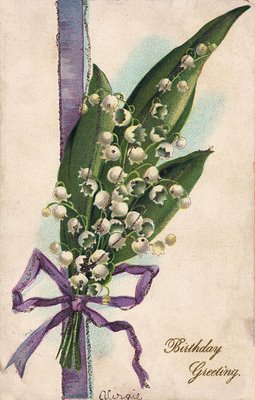 Do you like today’s art? This beautiful antique birthday card feauturing Lily Of The Valley comes complements of The Graphics Fairy, a wonderful site providing free vintage images to artists.
