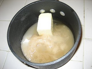 5. Just before the cake is done, combine the Rum Sauce Ingredients in a small sauce pan and cook until the butter melts, stirring to combine.