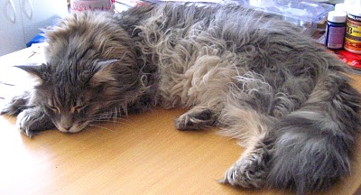 Love the piccy Tsunami chillin' – I keep looking at Maine Coon cats on the internet and there are a couple of breeders fairly near to me, but I really cannot get another cat yet. We have discovered that Edward, my oldest son, is allergic to cats (as well as grass and dust mites!!) and I'm not sure that a cat with longer fur would be good for him. Still I can look and dream LOL!!!