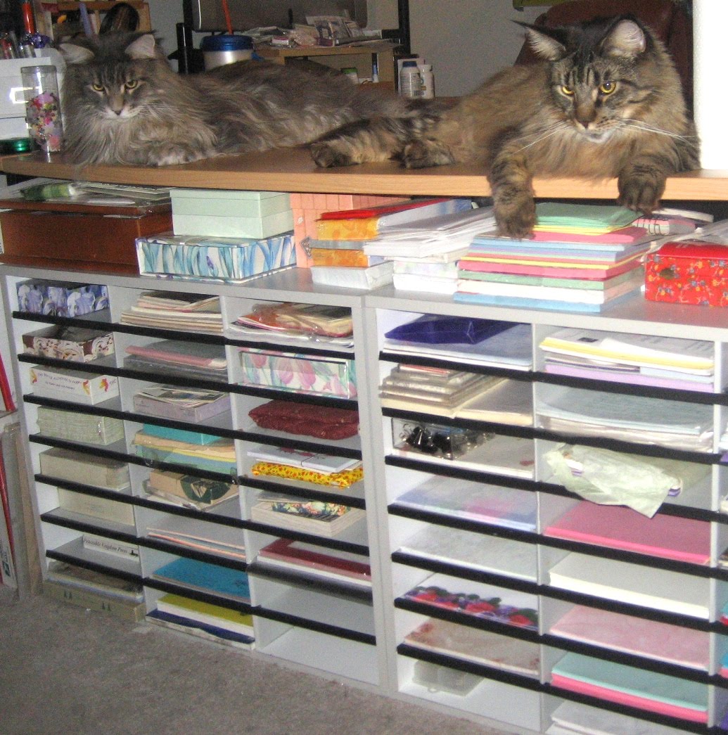 Lovely paper storage – wish I had room for something like that – I might actually be able to find paper then ha, ha….Gorgeous cats…