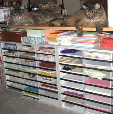 I love all your paper storage shelving. Your cats are just gorgeous.