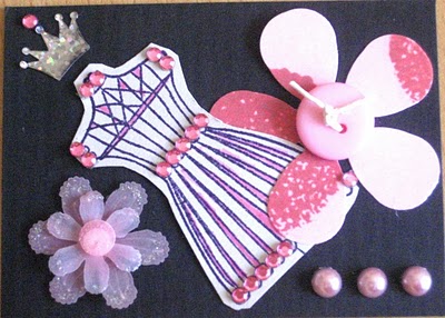 I created today’s ATC, The Perfect Dress, using the beautiful stamped image and the glittery bling crown from my Collage ATCs Girly Swap packet shown in my WOYWW10 post. I have loved this image ever since Wendy first made me an ATC with it a year prior (I would love to know the name and manufacturer of this stamp – hint hint!) I used all of my favorite girly items on it – the pink and black color combo, bling and flowers, glitter and pearls, buttons and my Tombow Markers for some extra pizzazz.  I thought about adding pink stickles around the edge to really doll it up, but couldn’t decide if that would be overkill so left it as is – what do you think?