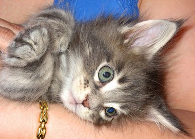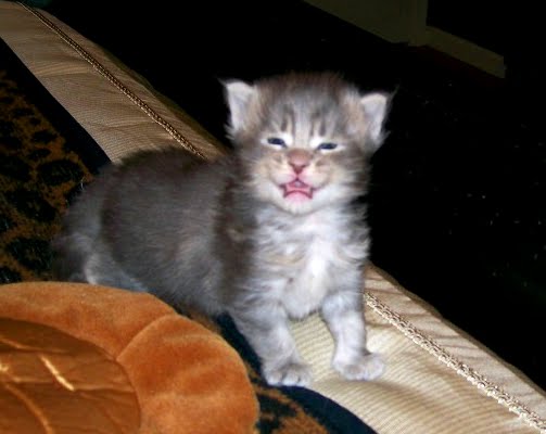 Today is Tsunami’s birthday! At three years and 22 pounds, he is the epitomize of a “gentle giant” – a quality Maine Coons are known for. To celebrate his special day, I thought I would share some of Tsunami’s earliest photos with you – photos that were taken before he came to live with us – photos that helped hubby and I fall in love with him even before we met him!