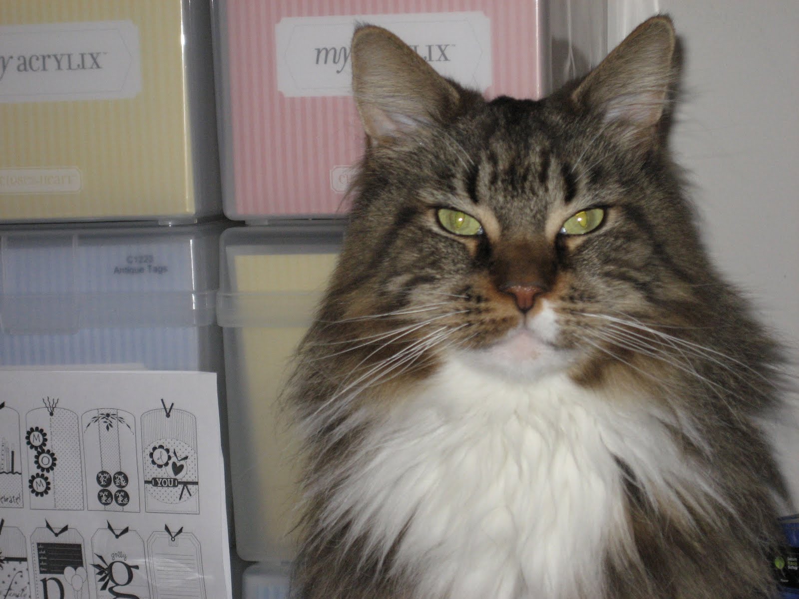 The pretty face that is greeting you is Angelica! No, I did not get a new cat – Angelica is the only female Maine Coon I have ever owned, and she was one of two Maines I lived with prior to my current boys! She currently resides with my sister-in-law in single-cat bliss, but comes to visit me on occasion, where she loves to hang out with me in The Paper Palace and play with my toys!