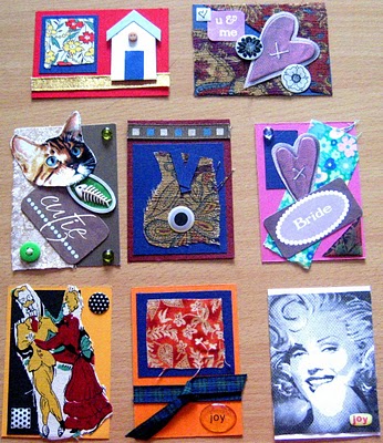 looks like your desk has seen lots of ATC action, keep up the great work, those fabric atc's are fab 🙂