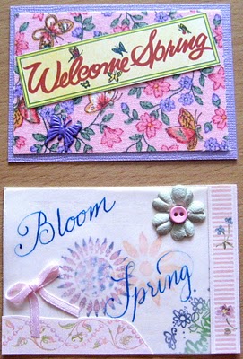 I also received two lovely ATCs in the mail – Welcome Spring from Jean Taylor, a talented ATC artist from ATCs R Us, and Bloom Spring from Kate Leopold of Letterplay. Kate was the winner of my recent Good Eggs Giveaway and she created her ATC using goodies from her prize package!