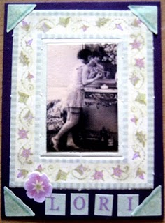 Lori’s Name ATC features an image from the Altered Pages Collage Sheet Mini Images.