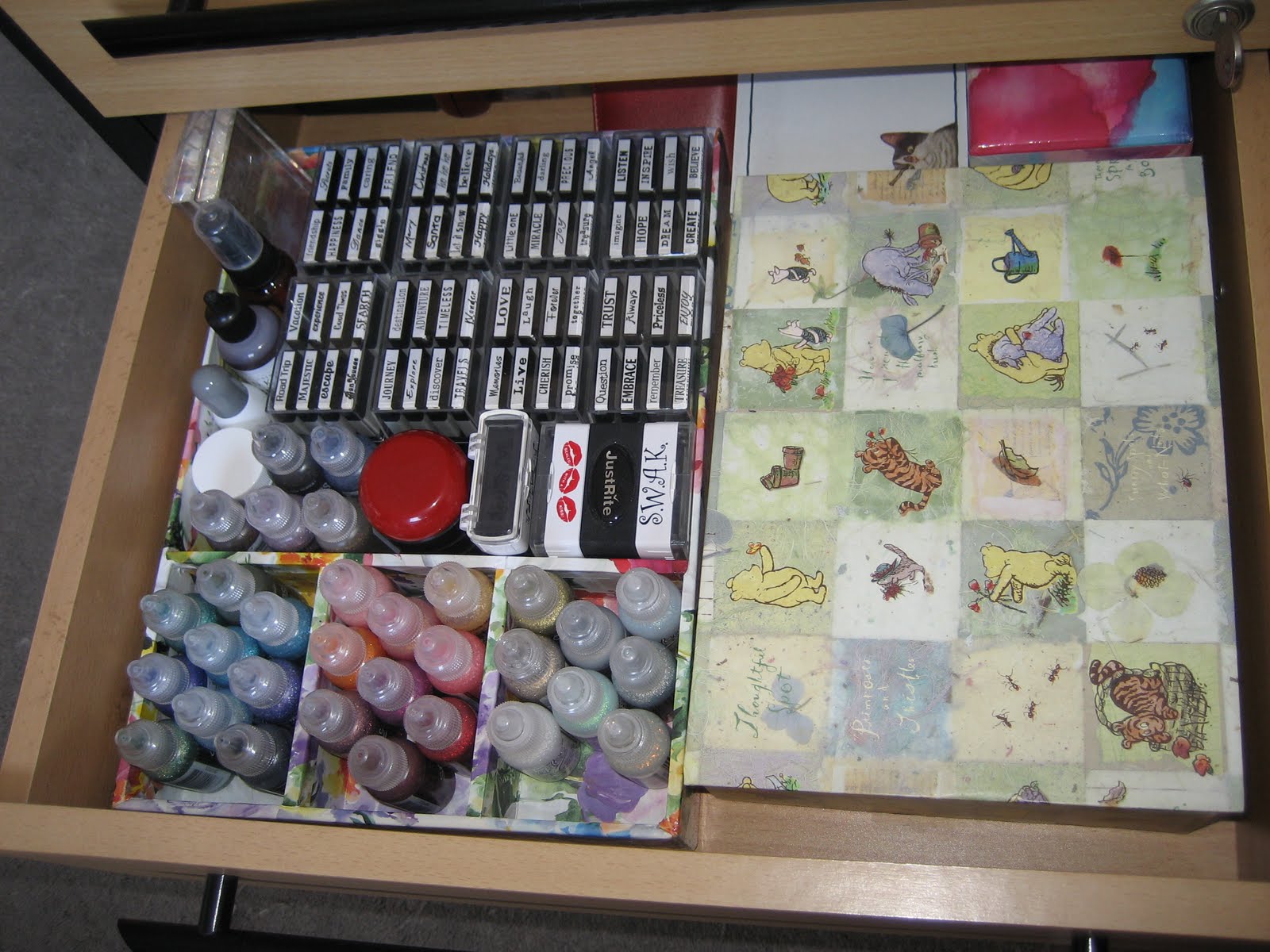 Oh my word! When is the last time a lady let you peek inside of her drawers? Well, just this once… I wanted to show you the drawer organizer I made for my Stickles, Just Rite Stampers, and a few crafty odds and ends.