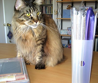Love the fact that you have a cat on your workspace on WOYWW! My dog was under my worktable yesterday, which explained why my sewing machine mysteriously started sewing on it's own lol!
