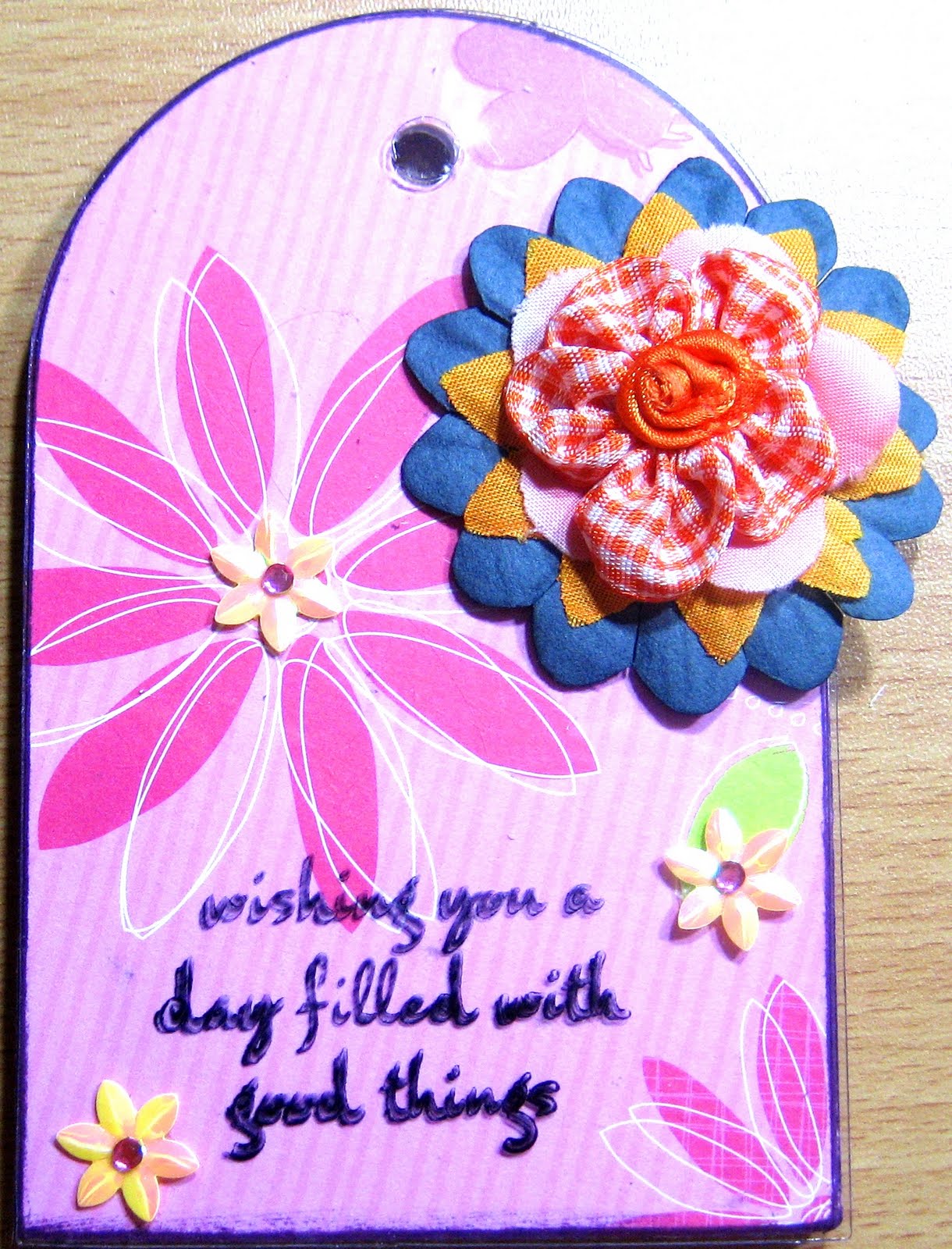 Today I created a tag book for a friend in need of a pick-me-up. What better way to brighten one’s spirits than to send a book filled with flowers, bling, and hearfelt sentiments?