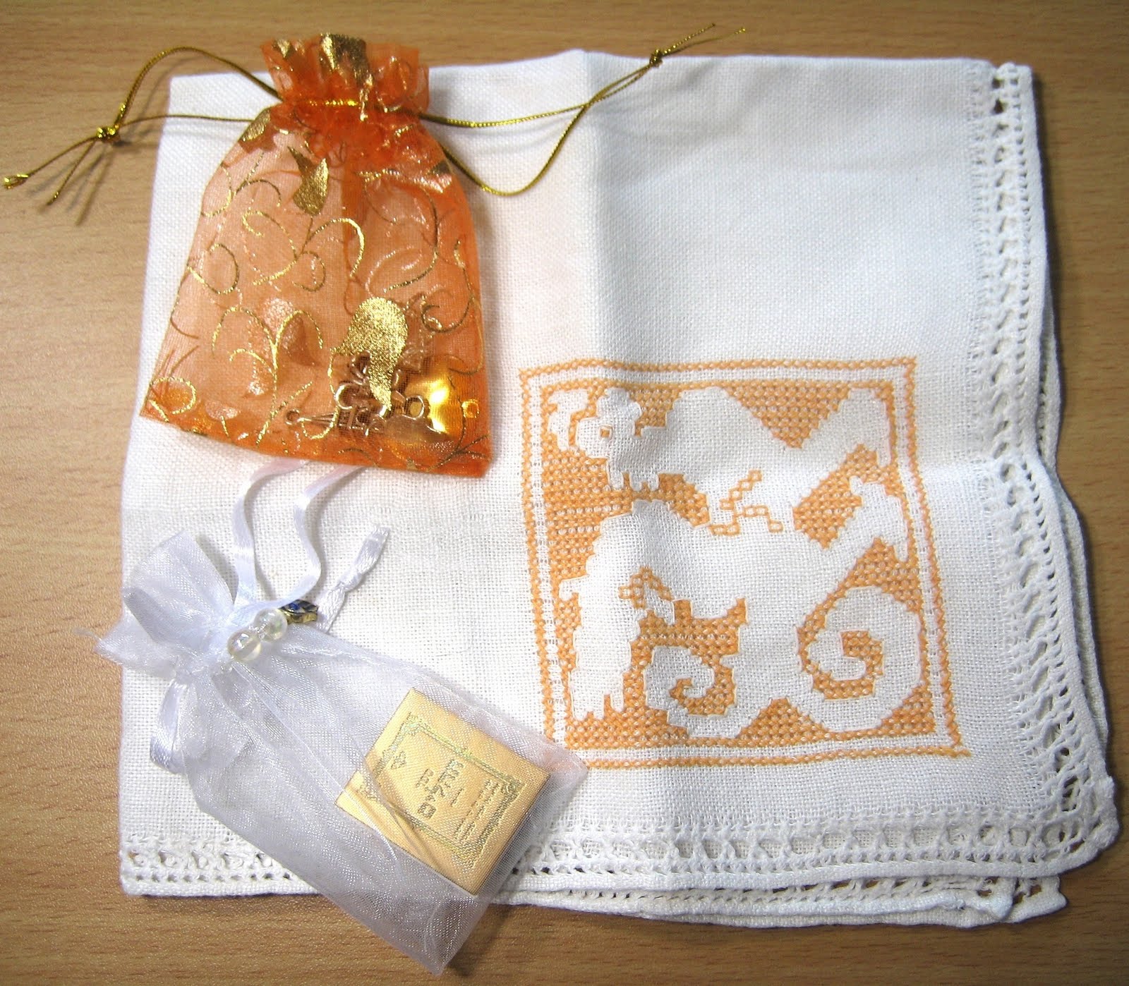 Elsina also sent me a beautiful hankerchief which sent me down memory lane. When I was a little girl, my mother used to give me hankerchiefs to carry in my purse to church. I always thought they were too pretty to use for their intended purpose, so I used to fold and unfold the cloth, admiring the pretty patterns on them! Today, I collect pretty delicate bags like the ones Eslina enclosed to fill with gifts and treasures for my friends. Don’t you love how these items coordinate so beautifully?