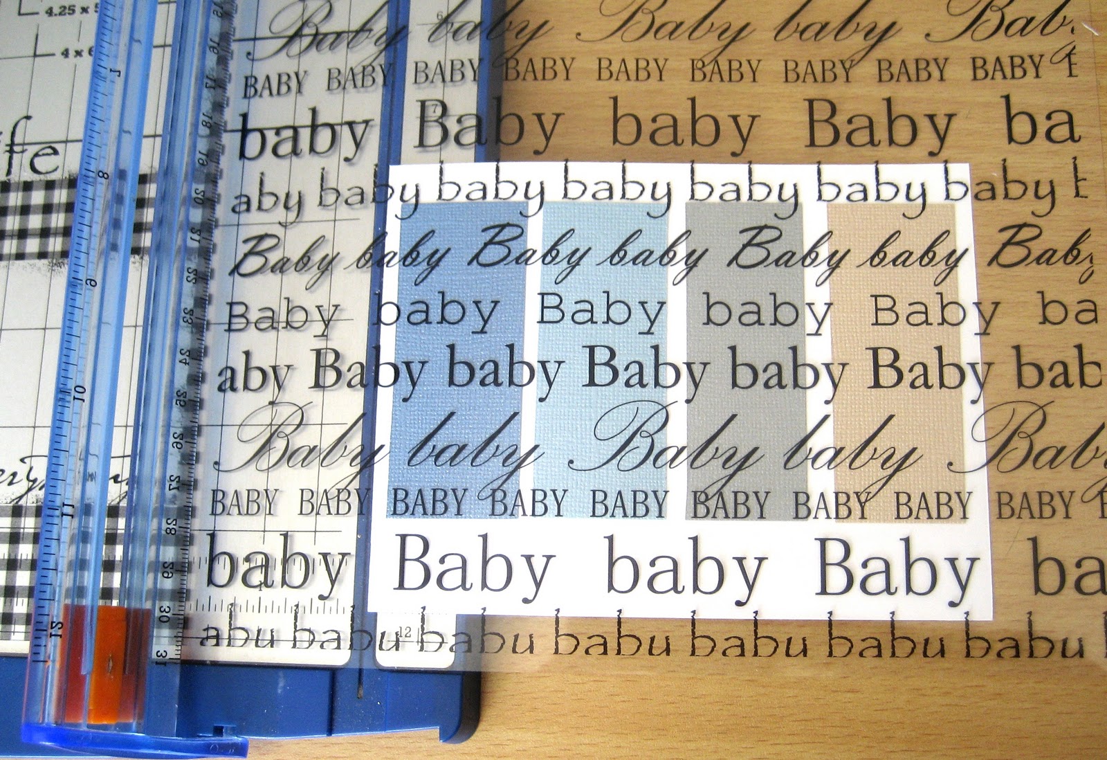 Positioning: One of the wonderful things about transparencies is that you can see exactly where you want to position specific text or images on your card. Once you have made that decision, position your card and transparency on your paper trimmer, allowing for an extra margin around your cut to make positioning easier. When you are satisfied with placement, remove the card.