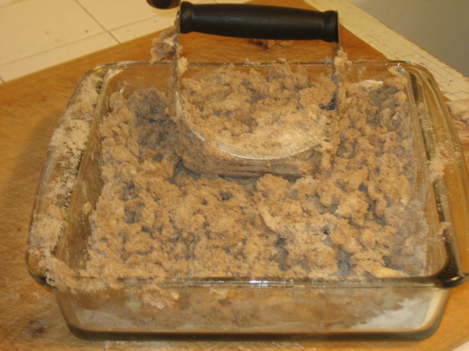 1. Combine the flour, brown sugar, and cinnamon in a flat pan or dish.