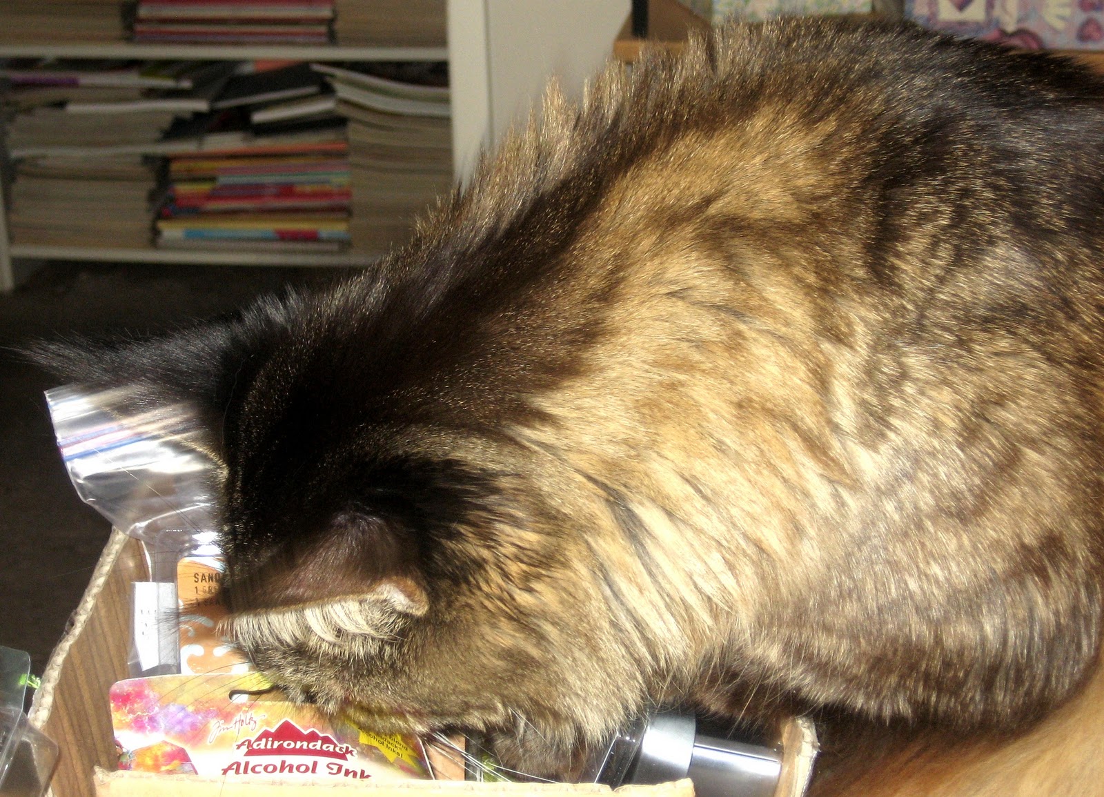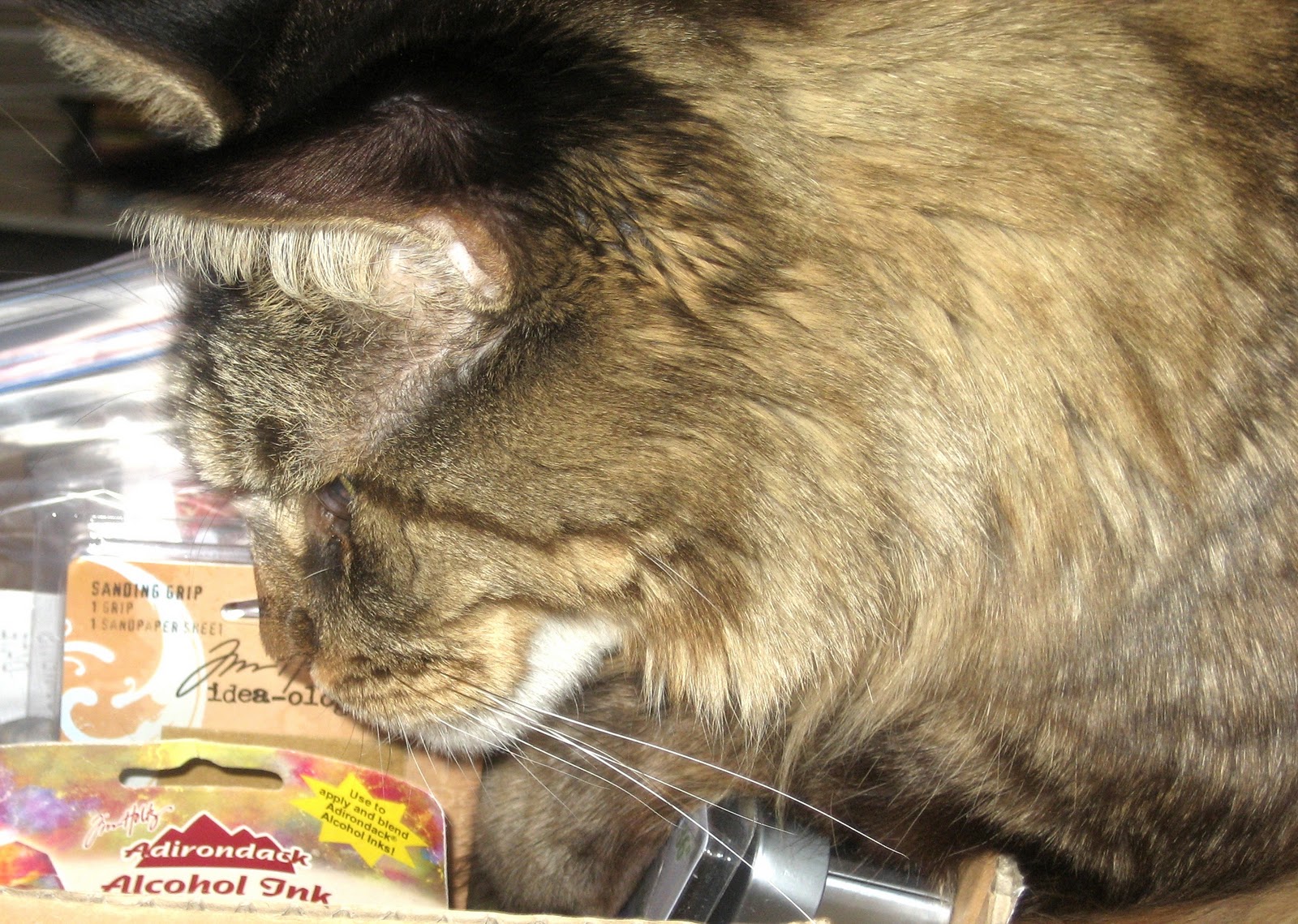 I know you’re concerned. I promise to get him help. I will fill his days with catnip and non-scrappy toys. I will keep the alcohol ink under lock and key. Together, we can kick this habit!