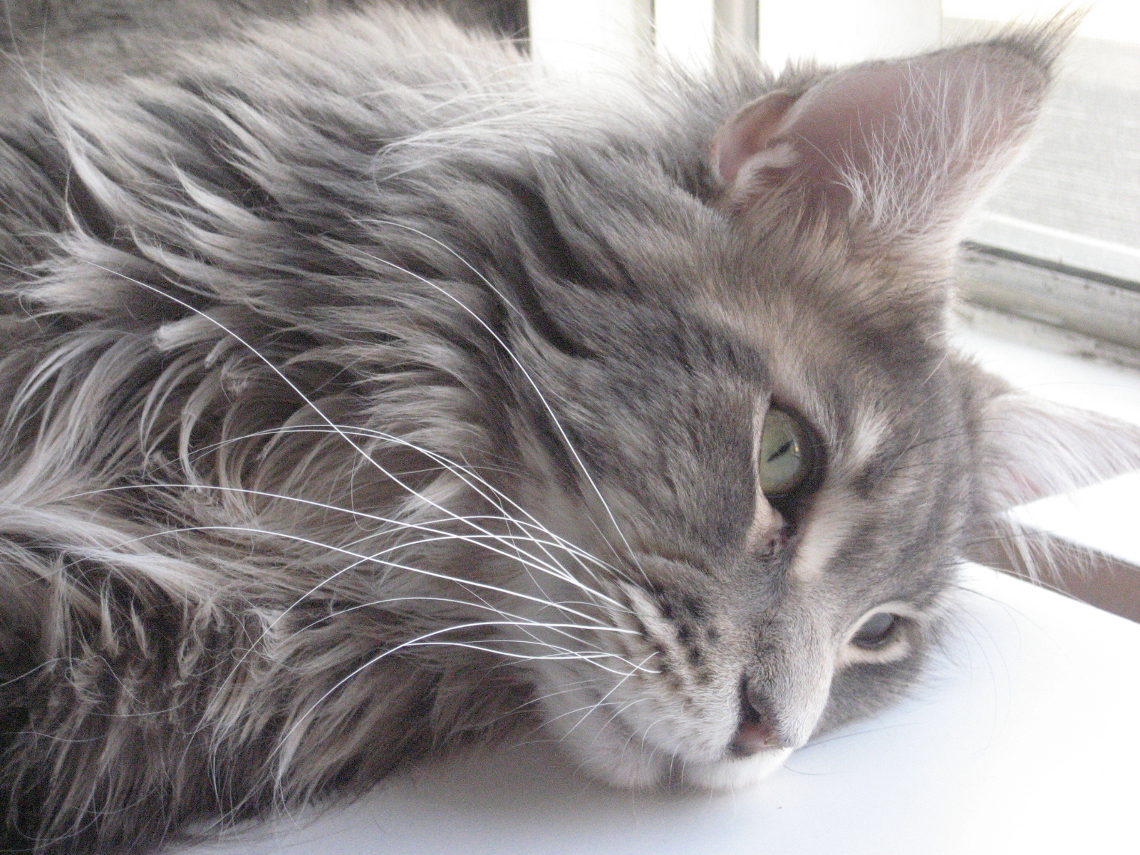 oh my gosh! He is just the sweetest kitty! 😉 My gram had a Maine Coon, he was the smartest, most cuddly cat I ever knew. He loved green olives, and if he heard that jar open, he would come running to beg for one! 🙂
