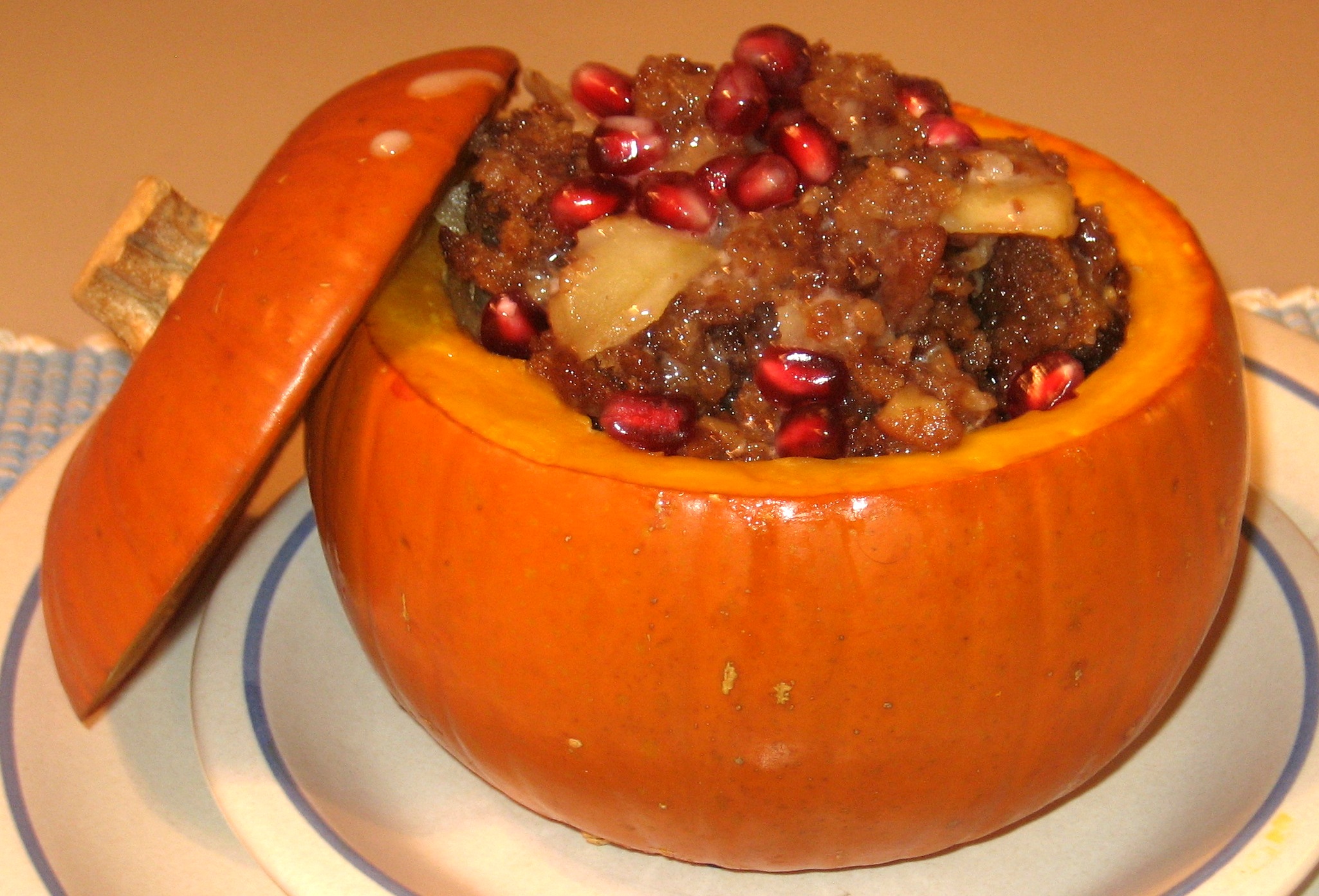 Stuffed Pumpkin with Apple & Cinnamon Raisin Bread Pudding Published by Create With Joy on December 15, 2011 · Please Leave a Comment Stuffed Pumpkin with Apple & Cinnamon Raisin Bread Pudding