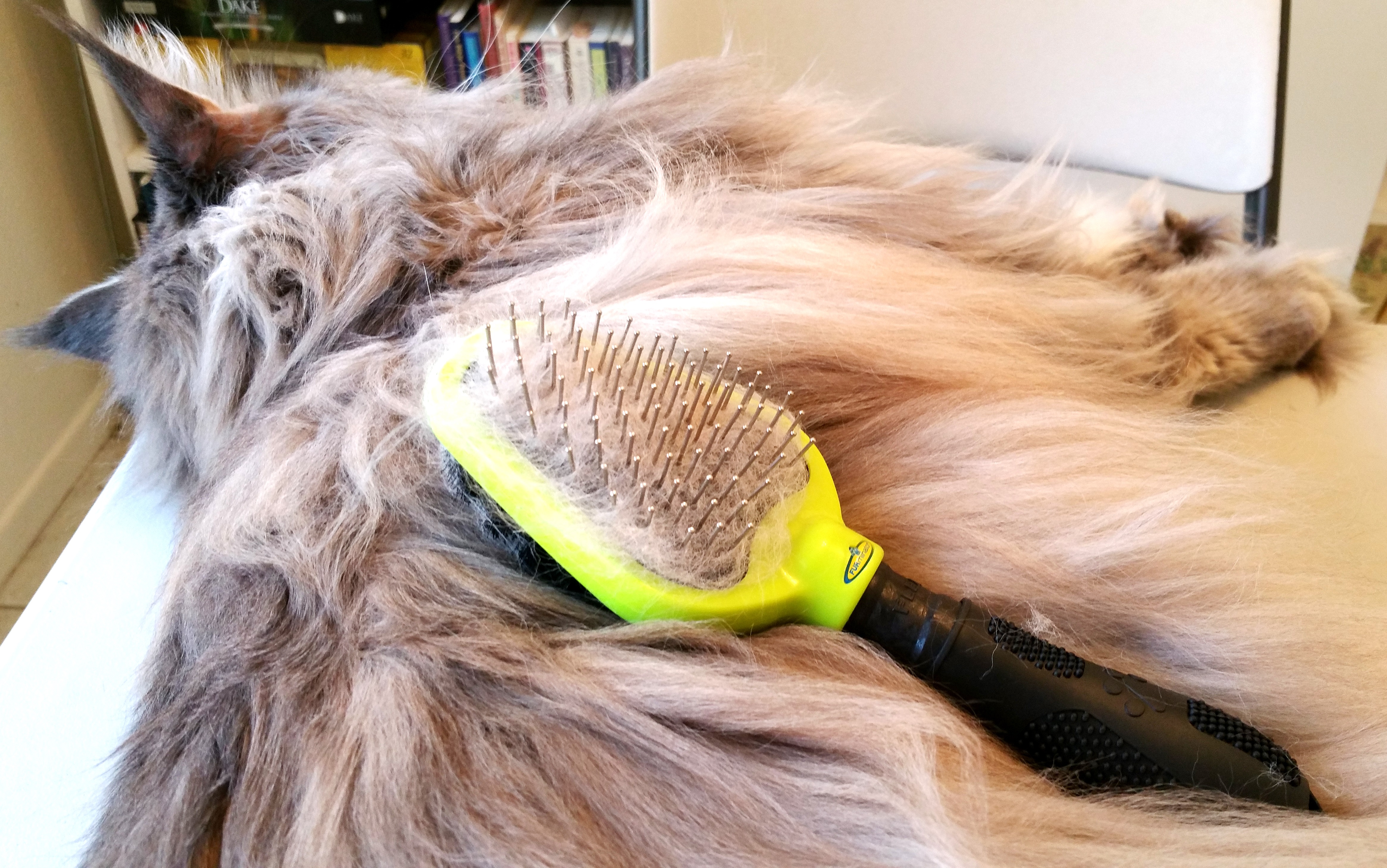 The Real Test came when I started to run the hard bristle side through his fur. Instead of dashing away like he usually does, he stretched out for more!
